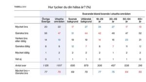 När det gäller tilliten till vården finns påtagliga skillnader. Förtroendet är generellt högt i befolkningen, men klart lägre i utsatta områden. Bland personer med utländsk bakgrund är tilliten särskilt låg, endast drygt hälften uttrycker stort förtroende. Bland boende i utsatta områden uppger 71 procent av dem med svensk bakgrund att de har stort förtroende för sjukvården, jämfört med 56 procent bland dem med utländsk bakgrund. Samtidigt uppger äldre personer i utsatta områden en betydligt högre tillit än yngre.